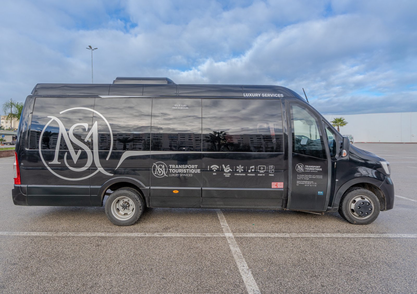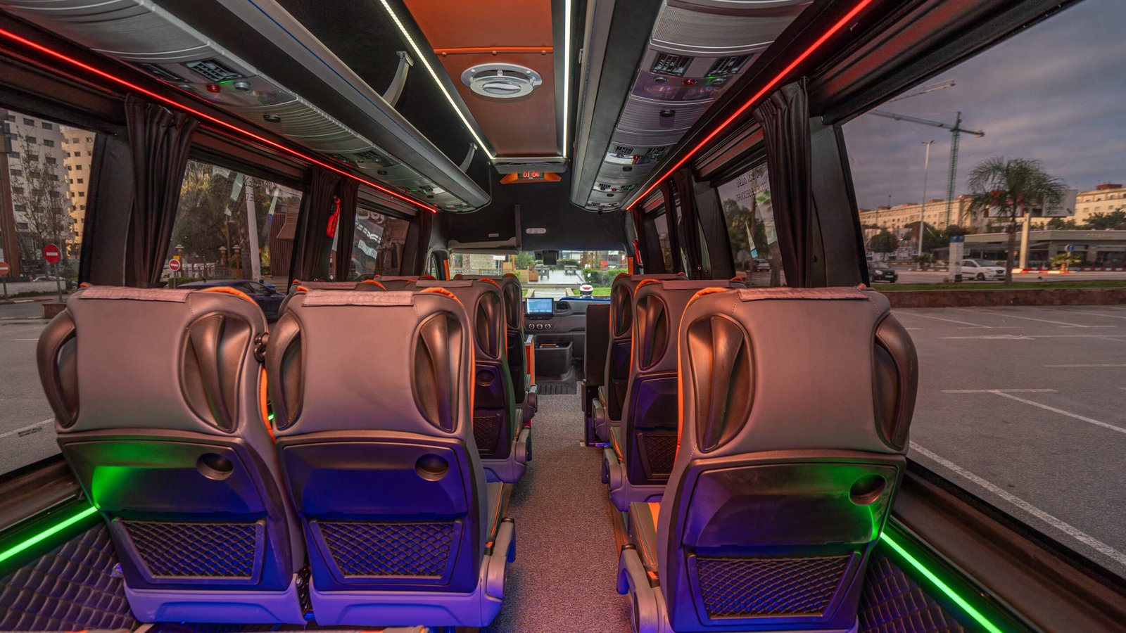 Le véhicule est équipé d’une climatisation et d’un chauffage performants, assurant un confort optimal en toute saison. Pour plus de praticité, les passagers bénéficient du Wi-Fi gratuit, de ports USB pour la recharge des appareils et d’un système audio à bord.